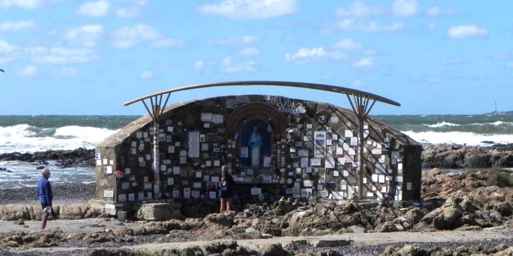 Esta pequeña capilla a cielo abierto, ubicada en la Playa El Emir, y que generó mucha polémica durante su construcción, atrae durante el año a fieles y turistas, que se acercan al lugar por curiosidad o para realizar pedidos y agradecimientos.