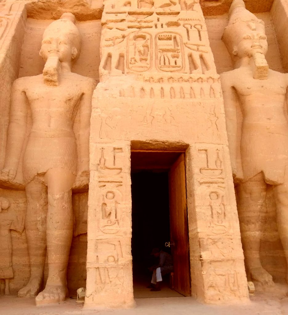 Nuestra llegada a Asuán tenía un doble motivo, por un lado, conocer la represa que cambió para siempre la vida de Egipto, permitiéndole tener varias cosechas al año. Por otro, está muy cerca de la maravilla histórica y cultural que son los templos de Abu Simbel. Estos templos, en realidad sendos panteones monumentales, consagrados al Faraón Ramsés II y a su esposa Nefertari hubieran quedado inexorablemente bajo las aguas de la represa. Así se perdieron varios monumentos, pero los de Abu Simbel eran demasiado majestuosos para dejarlo ir simplemente. Hubo una gran campaña internacional para recaudar los fondos necesarios, y finalmente una empresa sueca se encargó de rescatar los templos, una asombrosa tarea que incluyó cortar los enormes bloques de varias toneladas cada uno y transportarlos y armarlos en un lugar más alto, fuera del alcance de las aguas. Y créanme que valió largamente la pena.